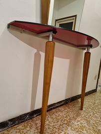 Consolle con Specchio Vintage anni 60. Gambe in legno, piano in vetro e specchio