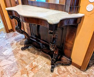 Consolle (console) antica del XIX secolo ('800) in legno con piano in marmo (specchiera a corredo)