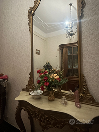 Stile Luigi XV – Finitura Dorata e Marmo. Vendo raffinato set da ingresso composto da consolle e specchiera coordinata. Il mobile richiama lo stile barocco francese, perfetto per chi cerca un elemento d'arredo classico e luminoso.