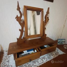 Consolle da camera legno massello noce con specchio e doppio cassetto L.70 h.66 p.20 pezzo UNICO articolo prodotto artigianalmente