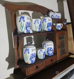Consolle stile liberty porta spezie in legno completa di ceramiche dedicate, sempre d'epoca. info al 392/8266109 no messaggi....