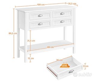 Tavolo da Ingresso Mobile Consolle da Entrata con 4 Cassetti Tavolo Stretto Portaoggetti in Legno MDF 100 × 35,5 × 80,5 cm Multiuso Salvaspazio Corridoio Stile Shabby Chic