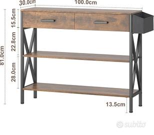 Console Mobile da Ingresso, con 2 Cassetti e 2 Ripiani, Tavolo Console con Piedini Regolabili, Tavolino per Soggiorno, Ingresso, Corridoio. Dimensioni: 100 x 29,5 x 81 cm. Colore legno marrone. Come nuova, priva di graffi o imperfezioni. Ritirabile anche gia montata in zona Montesacro.