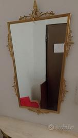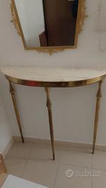 Consolle composta da specchio con cornice metallica dorata e base treppiede a mezzaluna con piano in marmo. Consegna a Iglesias.