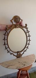Consolle da parete vintage, anni '50/'60. Marmo o alabastro 70 x 20 cm circa Specchio, 70 x 50 cm circa . Reggimensola e cornice probabilmente in ottone. Contattarmi per la zona di ritiro, no spedizione