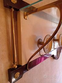 Consolle di ingresso fine anni 50, compreso due sedie e cappelliera. Realizzato in ottone e marmo; vetri, specchio e marmo non presentano segni di usura. Usato ma in buone condizioni. Trasporto a carico dell'acquirente.