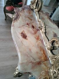 consolle dorata con Marmo e specchio d'epoca in stile barocco con intarsi in legno e lavorata a mano tenuta in ottimo stato