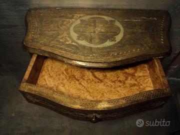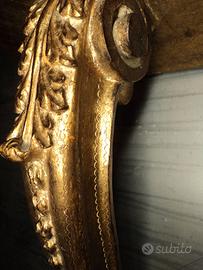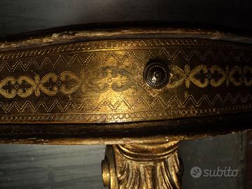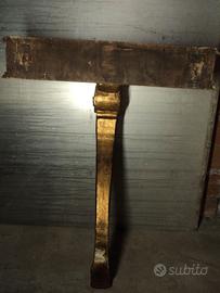 Consolle dorata con cassetto in legno lavorato stile barocco L. 54 H 76 P 28.5 altezza cassetto cm 10 con segni di usura
