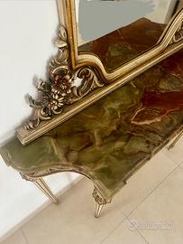 consolle e specchiera in stile Barocco caratterizzato da ricchi intagli e dettagli dorati.