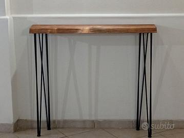 Porta calore, stile e carattere al tuo ingresso o corridoio con questa elegante consolle in legno massello antichizzato e gambe in metallo nero . Misure: larghezza 100 cm, profondità 20cm e altezza 101 cm. Realizzata a mano, questa consolle unisce la bellezza naturale del legno alla linea minimal delle gambe in metallo, creando un perfetto equilibrio tra design moderno e stile industriale. Il piano in legno valorizza le venature naturali rendendo ogni pezzo unico, mentre le gambe in metallo garantiscono stabilità e un look contemporaneo. L'articolo verrà spedito smontato, con il materiale necessario (viti) e i pre-fori disegnati #consolleingresso #arredocorridoio #consollecorridoio #legnomassello #tavolinoentrata #consoletable #entrywaydecor #rusticmodern #consolarecibidor #mueblepasillo #estilorustico #muebleentrada #muebleestrecho