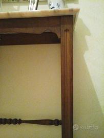 Vendo "consolle" con piano in marmo , e due sedie , tutto perfetto. Lung.84 cm, larg.31,5 cm, h.83 cm. Sedia h.1,16, larg. 44 cm.