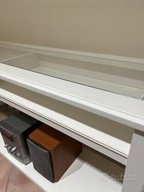 Consolle tavolo in legno e vetro In buone condizioni con rattoppo visibile in foto sul secondo ripiano Prodotto gia montato Ritiro su piano strada No spedizione