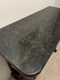Antica consolle francese del periodo impero in piuma di mogano e marmo nero. Dimensioni: h 115 x l 90 x p 45