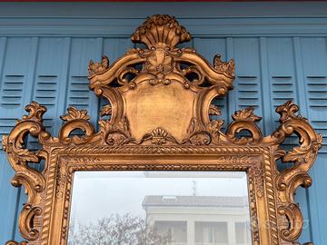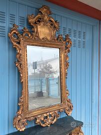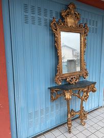 Pregiata consolle in legno con piano in marmo e soecchiera imponente in foglia oro misure 97x45x90h consolle soecchiera 150x90