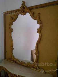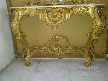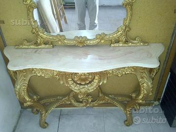 vendo bellissima consolle in oro con piano in marmo e specchiera le misure sono alt 2,16 prof 36 larg 133 chiamate solo se siete interessati.