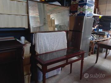 consolle ingresso in noce con piano vetro molato vano con sportellino apribile più specchio con cornice legno Larghezza cm 122 profondità cm 42 altezza cm 80