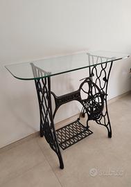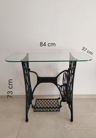 Dai carattere alla tua casa con un pezzo che unisce storia, design e luce. Autentica struttura in ghisa di vecchia macchina da cucire, completamente restaurata, verniciata nero opaco. Pedale e volano originali mantenuti per un look industriale autentico. Struttura solida e stabile, scritta centrale singer retroilluminata per un effetto scenografico acceso di sera.
