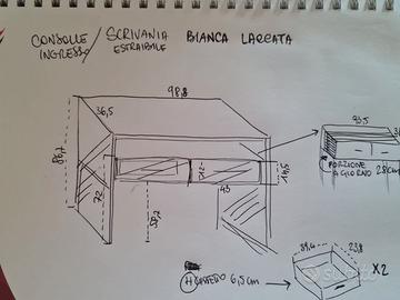 Vendo, per rinnovo mobilio, scrivania /consolle bianca laccata in ottime condizioni. Misure come in foto.