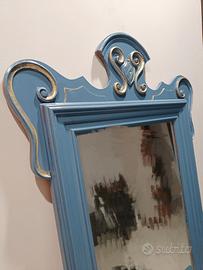 Consolle specchiera in stile, riverniciata con chalk paint azzurro polvere, un cassetto capiente Consolle 103x36 h 79 Specchio 65x5 h 103 con gancio Condizioni perfette Il prezzo è leggermente trattabile