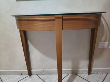 Stupenda consolle color legno come foto, perfetta per arricchire il tuo arredamento con eleganza e stile! La consolle è in condizioni impeccabili, pari al nuovo, e presenta un piano in vetro trasparente che dona un tocco moderno ed elegante.