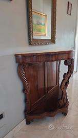 Consolle napoletana in noce Luigi Filippo di fine 800, inizi 900. Piano superiore in marmo sostituito durante il restauro.
