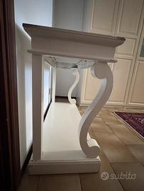 Consolle Maison Du Monde alta 83 cm profonda 48 e lunga 130, non priva di segni, Bianca facilmente riverniciare, ovviamente non spedisco, consegna a mano l’oggetto si trova a Gaggiano in provincia di Milano