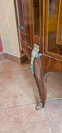 ●Struttura: Legno con intarsi a filetto e applicazioni in bronzo dorato.