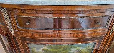 ●Decorazioni: Tre pannelli frontali dipinti a mano con scene galanti d'ispirazione settecentesca.