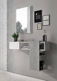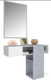 Mobile ingresso Tomasucci bianco e cemento, con mensola scorrevole, cassetto e specchio, praticamente nuovo.