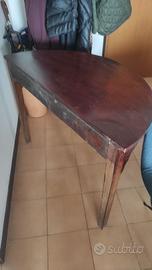 La vendo per mancanza di spazio. Non ha cassetti ed è, attualmente come la vedete in foto. Dovrebbe essere legno di abete. Fu comprata nel 1999 ad un mercatino delle pulci. Presenta una piccola scollatura che vedete nella quinta foto. Misure: cm 110 lungh., cm 76 alt., cm 55 profondità.
