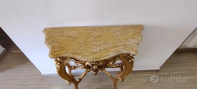Vendo 400€ piccola consolle ricoperta in foglia d'oro zecchino stile luigi Filippo non è antica è un rifacimento degli anni 70 .