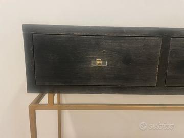 Vendo elegante consolle in legno color nero con struttura in metallo color oro satinato.