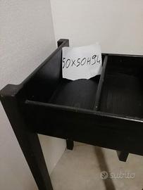 Consolle o tavolino alto, tinta nera, con due vani aperti. Dim. 50x50h94