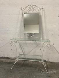 Consolle più specchio shabby chic in ferro battuto. Dimensioni 103x34 h85