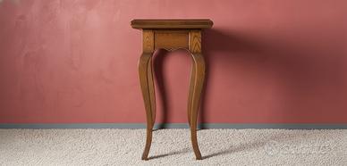 Consolle in stile provenzale in legno massello, caratterizzata da eleganti gambe sagomate e da una raffinata fascia frontale intagliata con motivo floreale e conchiglia centrale, che dona grande charme e ricercatezza al mobile. Il piano superiore ampio e lineare la rende ideale come consolle da ingresso, mobile da parete in soggiorno o elemento decorativo in camera, perfetta per appoggiare lampade, specchi o oggetti d’arredo. Struttura solida e finitura calda mettono in risalto la lavorazione artigianale e lo stile classico, rendendola un pezzo di forte impatto estetico.