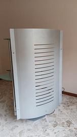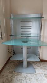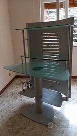 Bellissima scrivania di design in acciaio e cristallo a più ripiani. Il tubo centrale ha una ciabatta per più prese elettriche. Ideale per postazione computer ufficio, studio, cameretta. Ritiro diretto a Bari , non spedisco