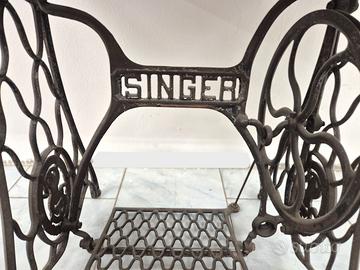 CONSOLLE RICAVATA DA VECCHIA MACCHINA DA CUCIRE DELLA SINGER, MOLTO ORIGINALE, NUOVA, larghezza 90 prof. 50 altezza 85