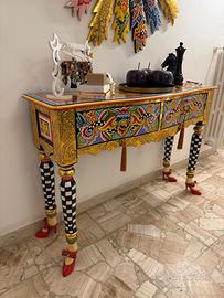 Vendo elegante set originale Tom’s Drag (VG New Trend) composto da consolle con 3 cassetti e specchio abbinato, entrambi dipinti a mano.