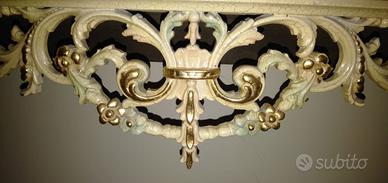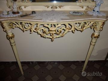 Pregiatissima consolle stile barocco con mensola in marmo. Altezza 235 cm (90+145), larghezza 130 cm, profondità 34 cm. Causa sgombero sono disponibili diversi altri articoli di arredamento e suppellettili varie. Prezzo già scontatissimo. Solo ritiro in loco. Solo persone seriamente interessate, no perditempo. Ulteriori ragguagli e contatti in chat.