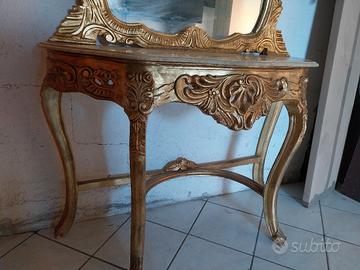 consolle barocca con finiture dorate. ripiano in marmo. specchio come da foto alto 131cm. alth consolle 85 cm. larghezza marmo 122. altre foto disponibili. condizioni perfette