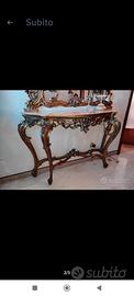 consolle di ricercata lavorazione artigianale. il pezzo è stato costruito negli anni '50 ed è comportato da consolle in legno massello dorato, piano in onice bianca, specchio bordato di legno massello dorato. lo specchio è in perfette condizioni. altezza massima cm 252. da ritirare il loco. trasporto a carico acquirente