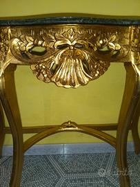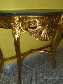 Consolle in foglia oro, con marmo verde alpi 96x78 in perfette condizioni e adatta a qualsiasi angolo della casa