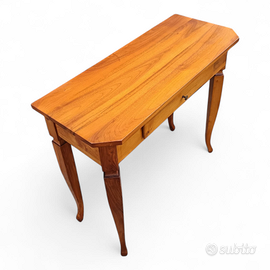 Questa elegante consolle da ingresso in legno massello di noce è un'aggiunta raffinata a qualsiasi ambiente. Il piano superiore lucidato a mano aggiunge un tocco di raffinatezza unico. Con un ampio cassetto foderato con carta fiorata , offre un'ampia capacità di archiviazione per tenere in ordine oggetti e accessori. Le gambe sottili conferiscono un aspetto leggero ed elegante. Realizzata con cura artigianale, questa consolle è un pezzo di arredamento durevole e funzionale che valorizzerà l'ingresso di casa tua per anni a venire.