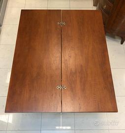 Consolle in legno massello trasformabile in grazioso tavolino rettangolare in un batti baleno; il piano superiore scorre orizzontalmente rispetto alla base e grazie alle cerniere si apre a libro per la configurazione a tavolino. Dotato di un cassetto utilizzabile esclusivamente nella funzionalità consolle, presenta alcuni segni dovuti all'uso nella superficie a vista consolle mentre risulta immacolato nella superficie a vista tavolino e comunque in ottime condizioni generali senza particolari difetti (vedi foto). Dimensioni a consolle 100x40cm h78cm circa, a tavolino 100x81cm h76cm circa. A richiesta posso fornire altre foto. Trasporto a cura dell'acquirente oppure consegna a domicilio a prezzo modico da concordare a seconda della destinazione. Scrivetemi solo se realmente intenzionati. Vigonza - Padova.