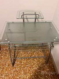 Consolle tavolo in vetro e metallo per pc. Comodi ripiani e supporto estraibile. Presenza di ruote posteriori. Ritiro in zona Selvazzano Padova.