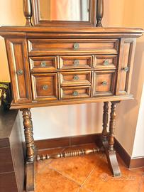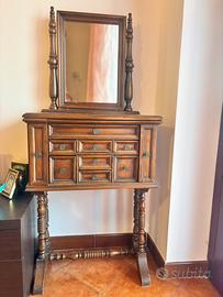 La consolle per toaletta da camera con specchio girevole e 10 cassettini in stile arte povera e classica è in buone condizioni e perfettamente funzionante.