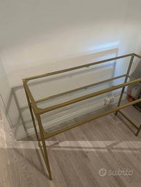 Vendo consolle trucchi o scrivania, vetro e ferro battuto color oro come nuova, comprata da poco e usata pochissimo. Misure 101x36x81