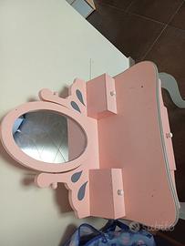 Consolle trucco bimba,in legno, usata ,ci sono delle macchie ,ma con un po' di pittura si coprono,è trucco.