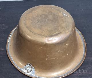 Materiale: rame con patina del tempo, interno con segni d’uso e ossidazioni tipiche degli oggetti d’epoca.