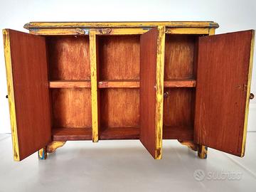 Questo oggetto può essere utilizzato in vari modi, come gioco per bimbi per esempio armadio per vestiti delle bambole, oppure come porta gioie per donna o comunque in molti altri modi.